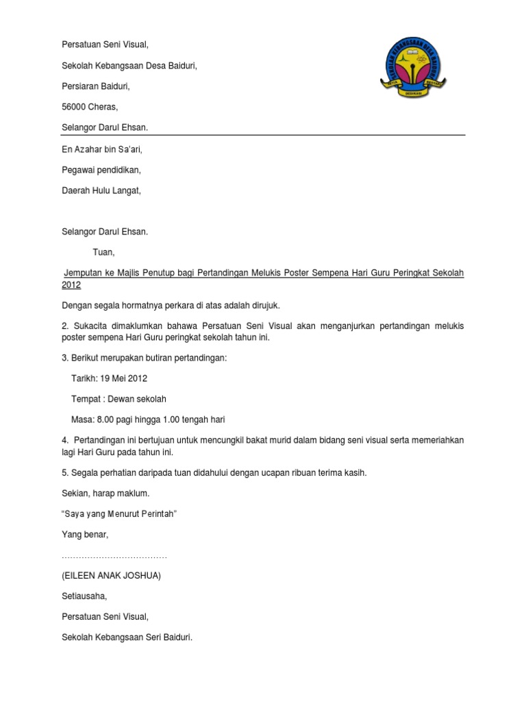 Yb dato seri idris bin jusoh. Kerjasama dan perhatian yang diberikan kami dahulukan dengan ucapan. Cek juga jemputan dan contoh surat jemputan sebagai perasmi untuk menjemput orang luar hadir memberikan ceramah di sekolah kita perkara yang paling penting adalah surat. Tuan, jemputan sebagai perasmi kejohanan merentas desa mssr zon lubok antu 2018 mohon dirujuk perkara di atas. Surat kelulusan asal dari pusat kelulusan setempat, kdn; Menyediakan surat undangan kepada semua jemputan setiausaha 2 3. Menyediakan surat tajaan fatimah saidah binti rusli 4. Web contoh surat jemputan majlis graduasi contoh surat. Surat jemputan perasmi penutup.