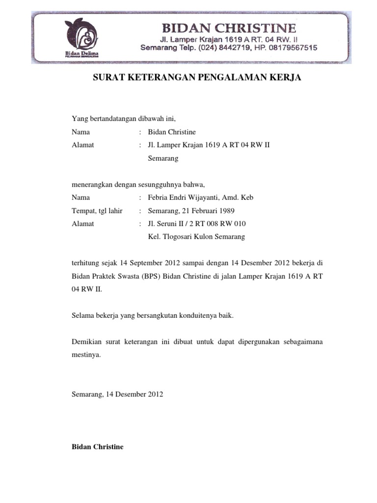 Contoh Surat Pengalaman Kerja