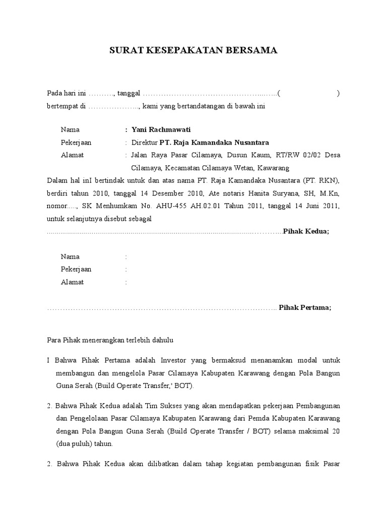 Webberikut ini contoh surat kesepakatan bersama phk surat kesepakatan bersama yang bertanda tangan dibawah ini : Webcontoh surat pernyataan persetujuan bersama. Surat kesepakatan bersama dibawah tangan. Bagi karyawan yang tidak menyita cuti bersama.