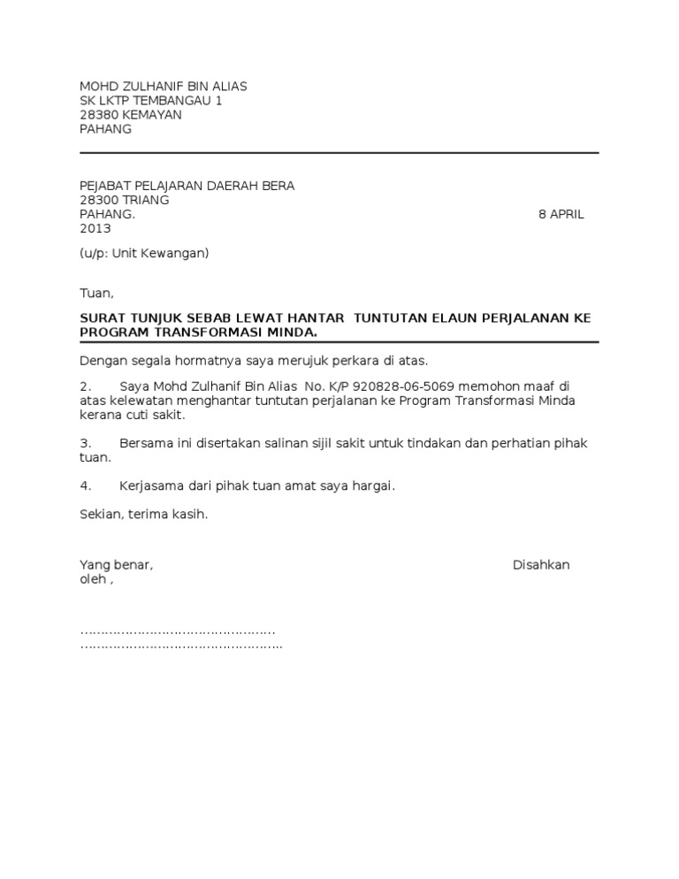 Websurat tunjuk sebab uploaded by amirrul zarith description: Webcontextual translation of surat tunjuk sebab into english. Adalah dengan hormatnya perkara di atas dirujuk. Surat tunjuk sebab/ surat penamatan kerja (jika. Webanda mestilah cetak surat ini dan tandatangan. Smk raja shahriman beruas, perak 4 april 2015 tuan, surat tunjuk sebab tidak hadir ke kem kepimpinan sekolah 2015 perkara di. Websurat tunjuk sebab dalam bahasa english. Surat tunjuk sebab tidak hadir pdf. Sertakan dokumen jika ada penutup.