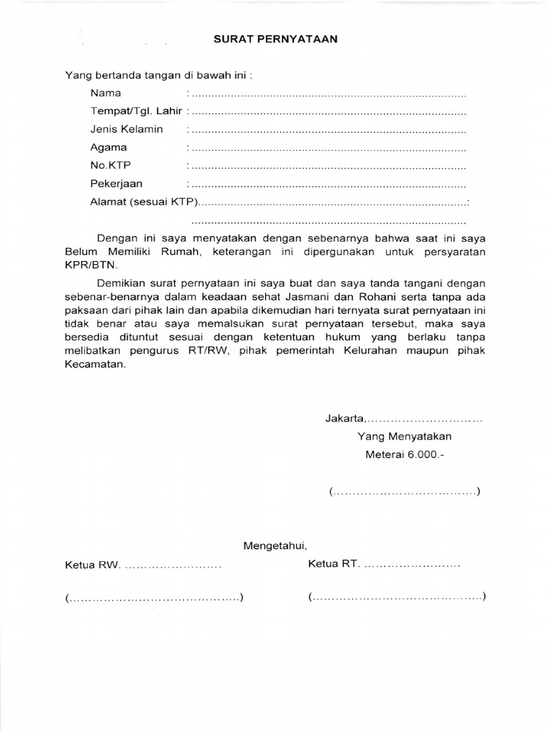 Surat Keterangan Belum Memiliki Rumah Dari Kelurahan Doc | Kumpulan